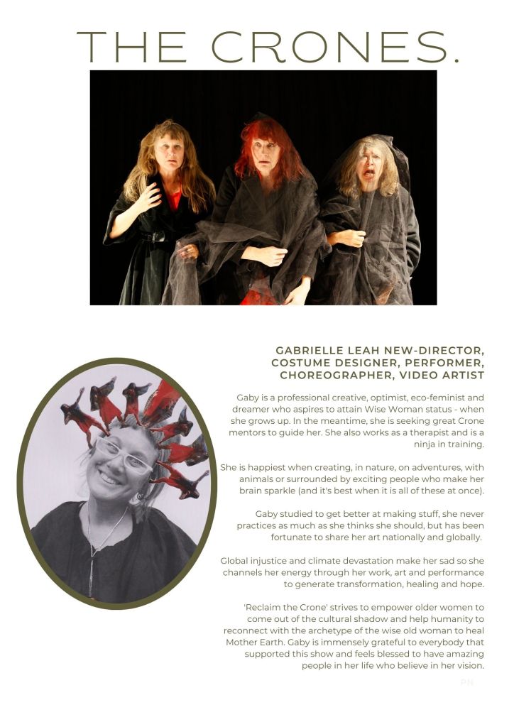 Get ready to be part of a revolutionary new mythology that will transform the way we think about aging, environmental sustainability, and social justice! Gabrielle Leah New and The Space Between Performance Collective is thrilled to invite you to support our funding drive for ‘Reclaim the Crone – a seditious new mythology for the coming revolution’ a multi-arts performance that has already captured the hearts and minds of audiences, critics, and industry professionals.