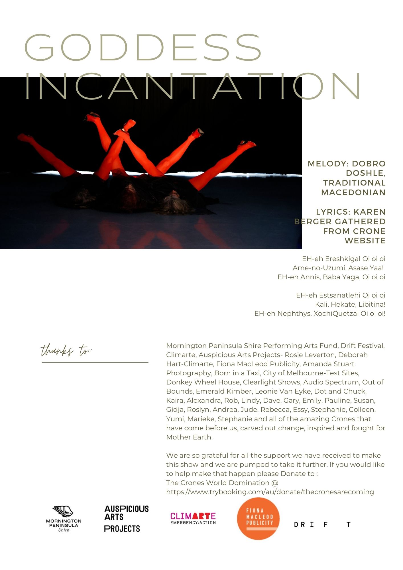 supported by: Mornington Peninsula Performing Arts Fund, Climarte, Auspicious Arts, Drift Festival